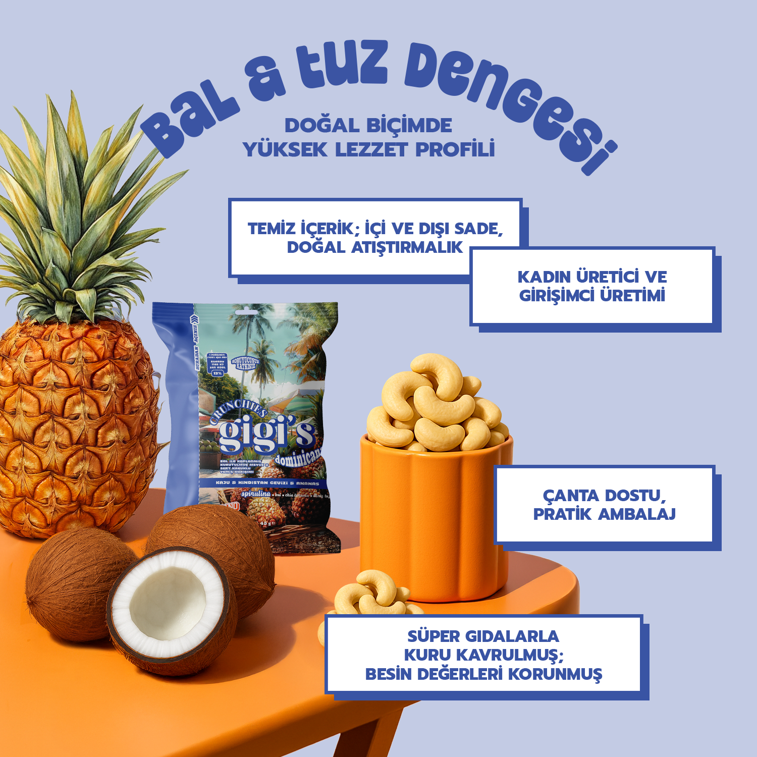 Kaju, hindistan cevizi ve ananasın tropik buluşması.